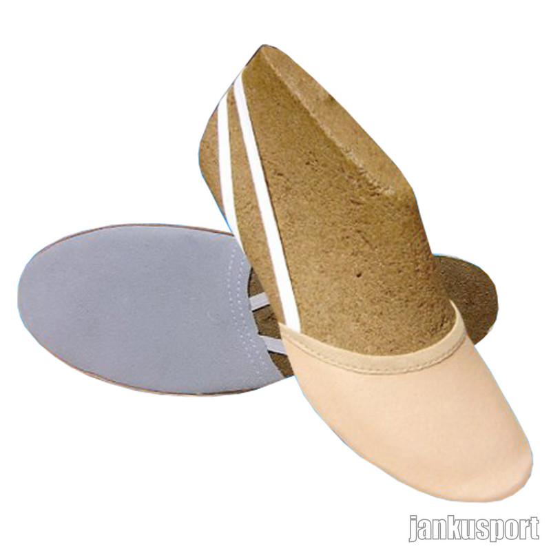 Svršek gymnastických špiček je vyroben z přírodní upravené usně ( vepřovice), která se vytvaruje podle tvaru chodidla ,po několikerém použití změkne.